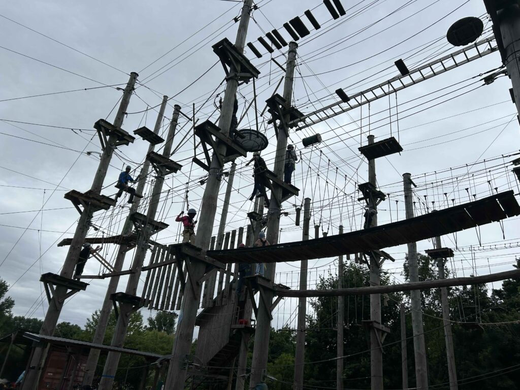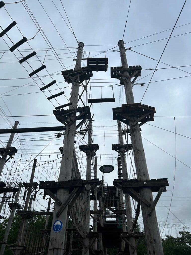 Der Hochseilgarten verfügt über mehr als 100 Kletterelemente in unterschiedlichen Höhen und Schwierigkeitsgraden, sodass sowohl Anfänger als auch Fortgeschrittene auf ihre Kosten kommen.